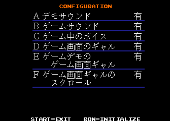| 再現手順 | Run game, enter service menu (F2, then reset) in ** SELECT MENU ** screen press J for CONFIGURATION then press Z (ron key) for initialize (default) settings, which will enable everything. Exit with P1 start key. to exit service menu press F2 then press P1 start or reset. You'll see demo sound will play and other settings works. Then exit game, re-run, no sound, settings are gone. This may be game bug yes but I think this is unlikely. thanks. | ||||